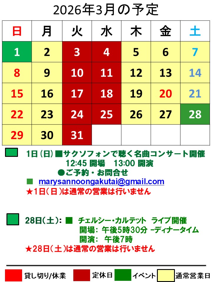 9月12日(土)、9月26日(土)、10月31日(土)にライブを予定しております。現在ご予約受付中です。詳細は当ホームページに記載のとおりです。宜しくお願い申し上げます。