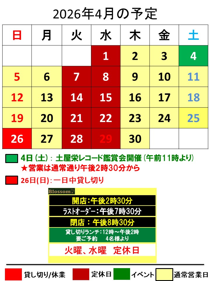 当店のライブは4月は御休みで、