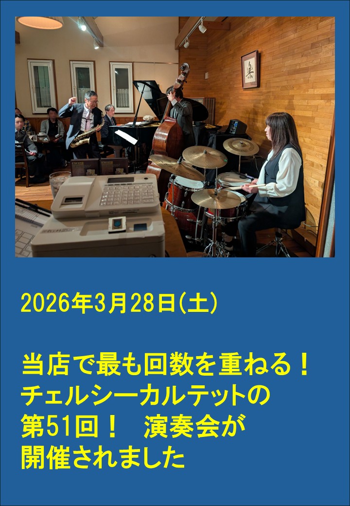2026年3月28日(土)51回CHELSEA QUARTETのライブ、大好評